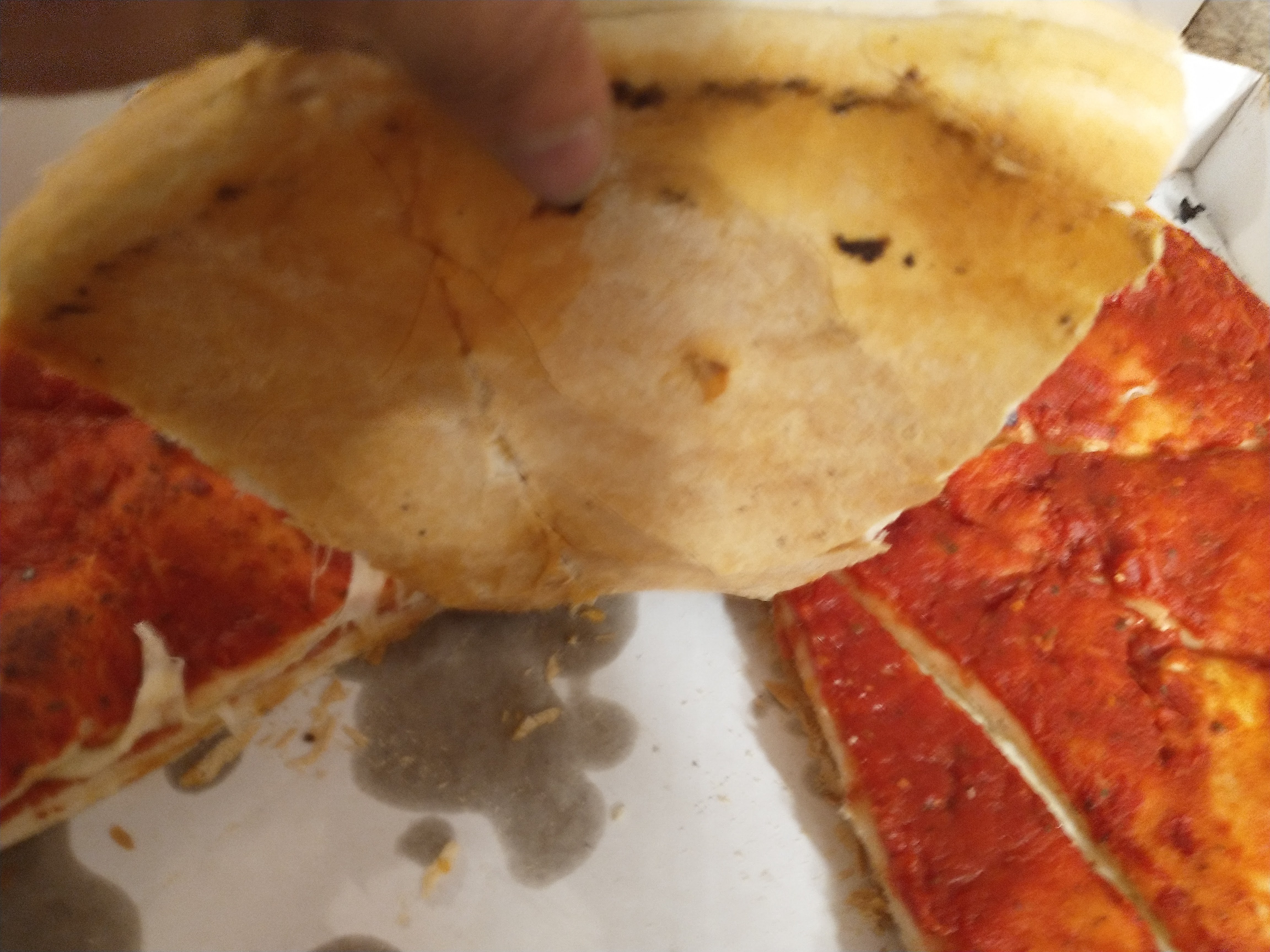 Our pie itself had a RATIO of 1cr/1ce/1ch. Possibly the thinnest pizza in town, you could almost see right through it. Its thinness reminded me of De Leon Pizza out on the east side, but it can't be the same recipe otherwise they would have kept the name. I'll give their crust a 3 out of 5. It was pretty crusty and dry, but altogether pretty good.